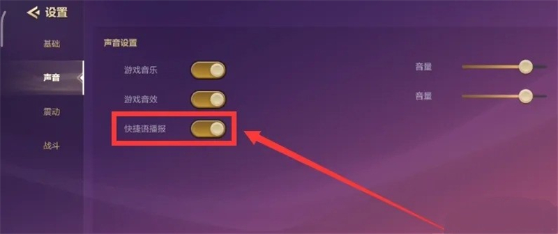 3.在声音设置界面中,我们找到快捷播放选项并将其打开。