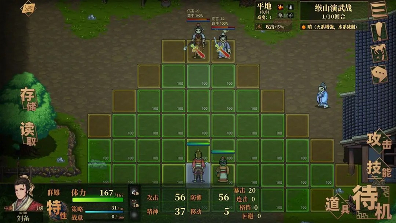 单击将军控制将军的行进位置,您可以查看界面上的一般信息和技能介绍。只能选择一个操作(技能/攻击),然后转弯结束!请根据实际情况调整国际象棋。