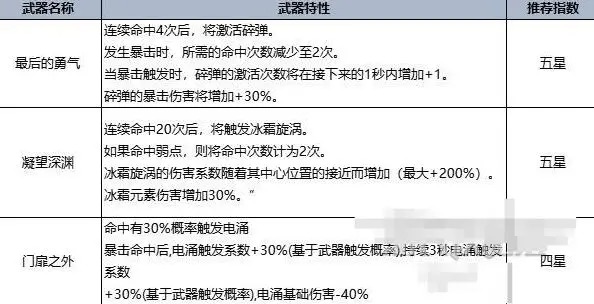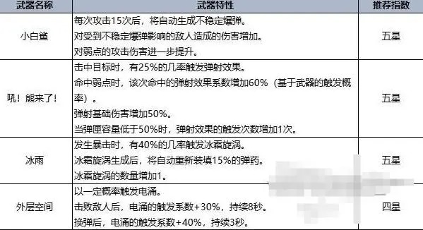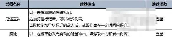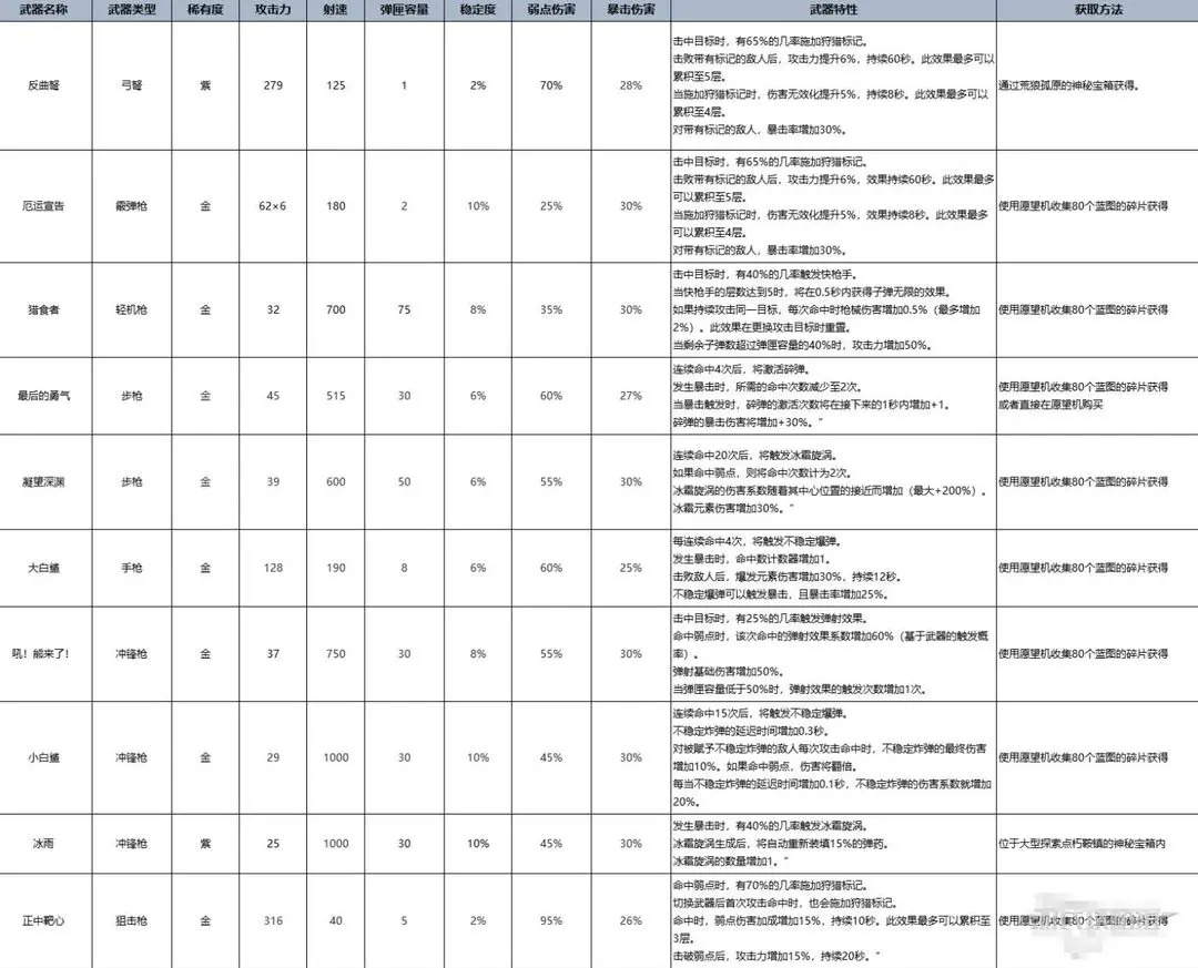 该表结合了目前所有武器中最强大,配备最高的武器,并且可以直观地看到武器的基本数据和获取方法。