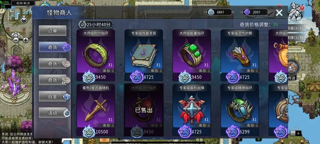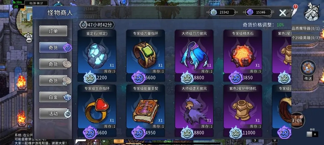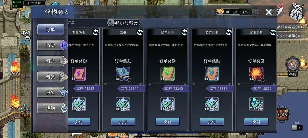 打开第四个遗物老虎机,奇怪的商人购买了奇怪的商品,升级遗物,升级人才,提取力量,商人订单交易以及中期药水升级。