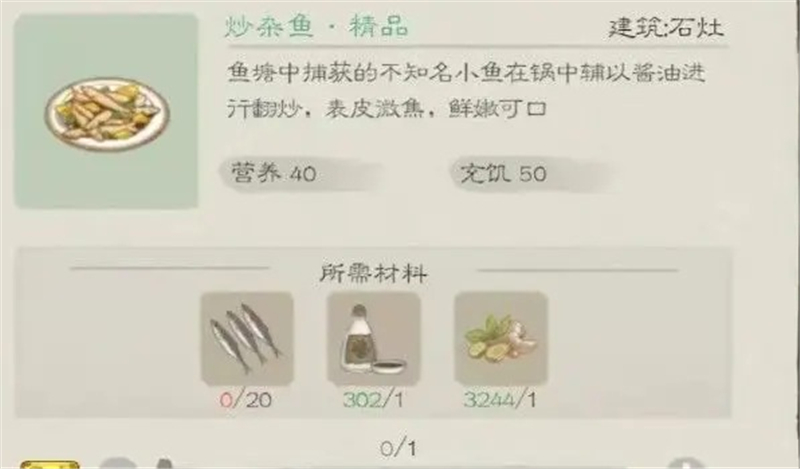 5。钓鱼——您可以在春季和秋季的早期钓鱼。还有一些钓鱼的食物来源,但只能在春季和秋季进行钓鱼。有很多被捕获的混合鱼,您可以制成炸混合鱼。
