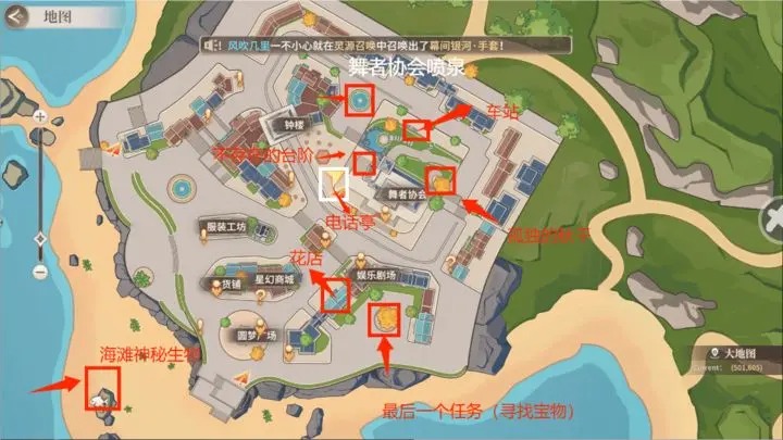 《唱舞星计划》七个未解决的奥秘的特定位置如下: