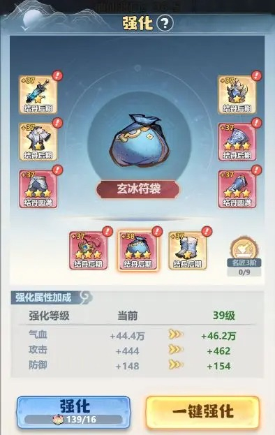 [01设备增强]基础建设的早期阶段·第三级开放。通过消耗增强精神晶体,设备的增强属性得到了改善。穿更先进的设备可以增加设备增强水平的上限。