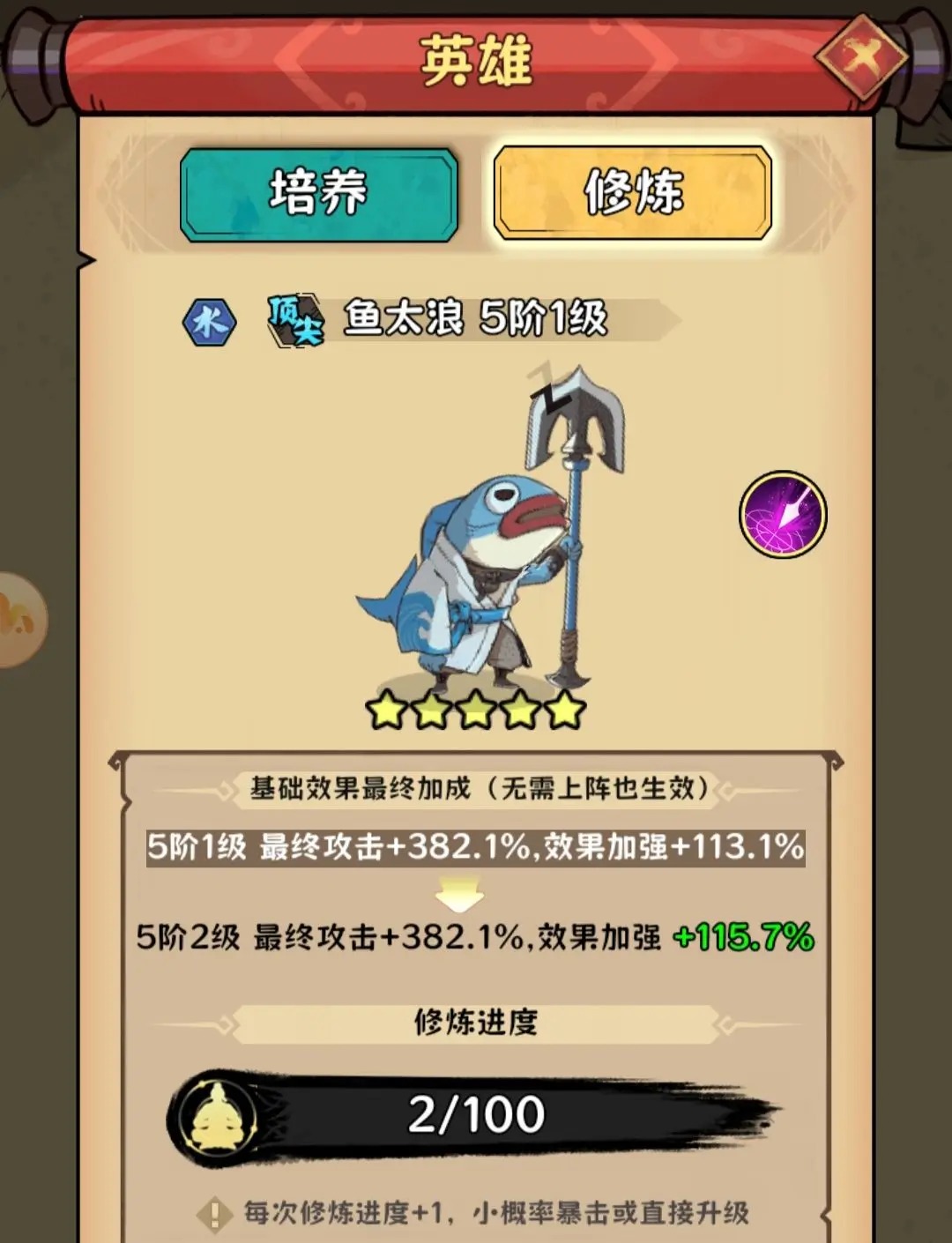 每次英雄升级到一个水平时,基本属性和基本效果都会得到改善,每次恒星升级到一个水平时,基本属性和特殊效果都会得到改善。