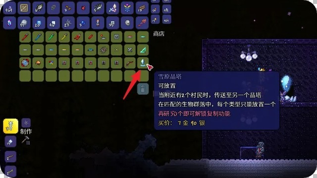 1。可以放置游戏世界中每种类型的水晶塔。除了不限制使用位置的通用水晶塔外,其他水晶塔只能在相应的生物群落中使用。