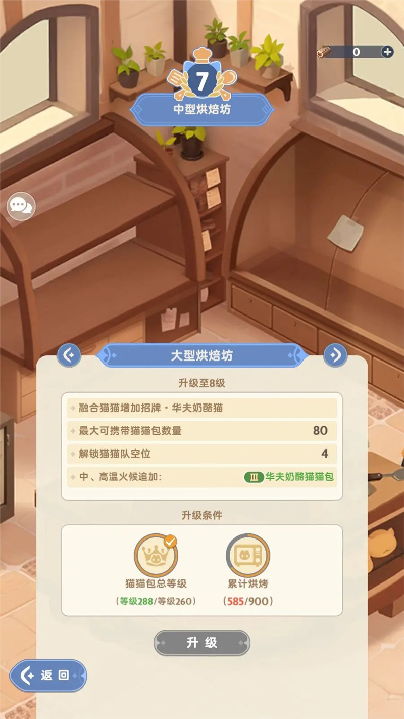 总而言之,我们需要通过烘烤我们每天获得的猫果木(即图片上的自动加热),然后达到一定数量的烘焙时间来升级面包店。迅速到达面包店7级是打开猫袋后的首要任务。