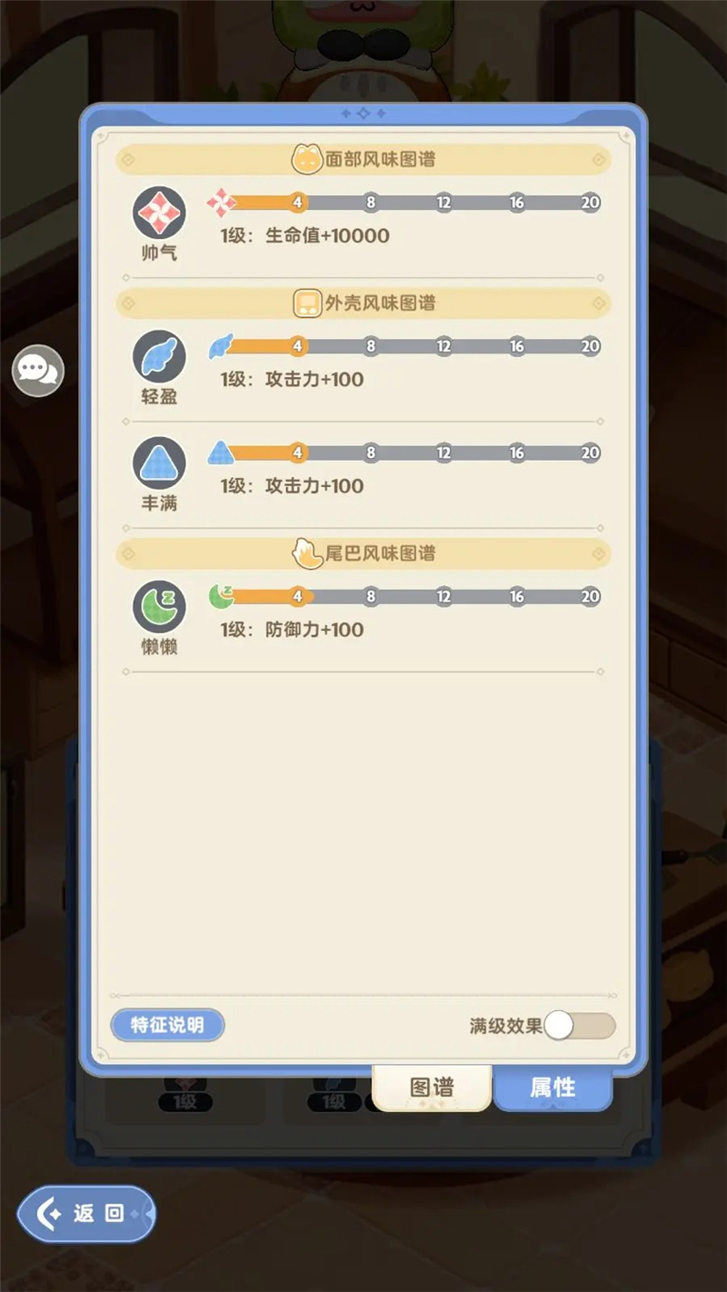 如上图所示,您可以通过食用面粉来升级风味。将猫袋的某种风味升级到5级时,将解锁1个风味图标。使用相同类型的4种风味图标,您可以通过1级升级风味水平。