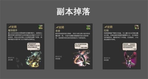 玩家在游戏中刷卡不同的游戏副本,可以有一定几率获得坐骑。例如,魔法猎人可以作为地下城“战斗红莲花阿拉米戈”中的掉落物获得。