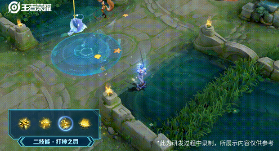 基础攻击技能:发射金色鱼钩,姜子牙以波浪为牵引,经验光球化为金色鱼钩,给予队友力量;
