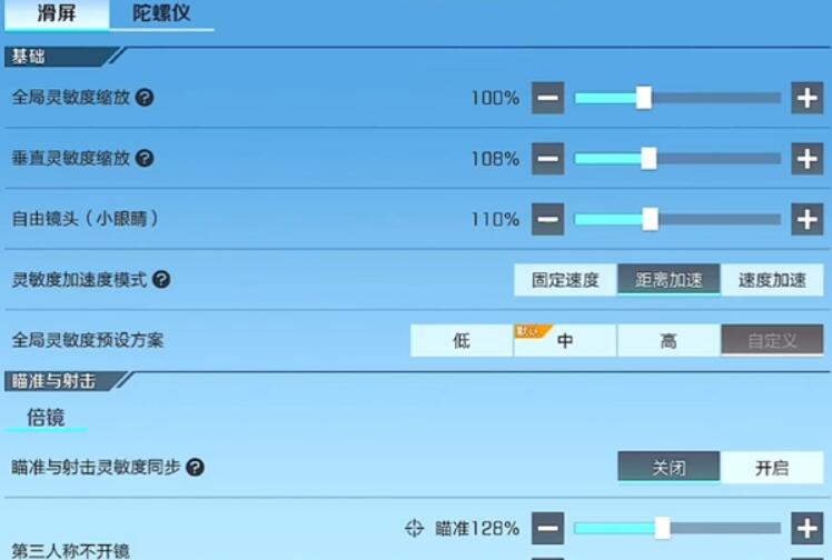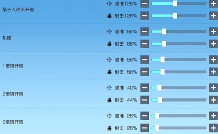 2.第三人称无瞄准镜:瞄准:128%,射击:128%