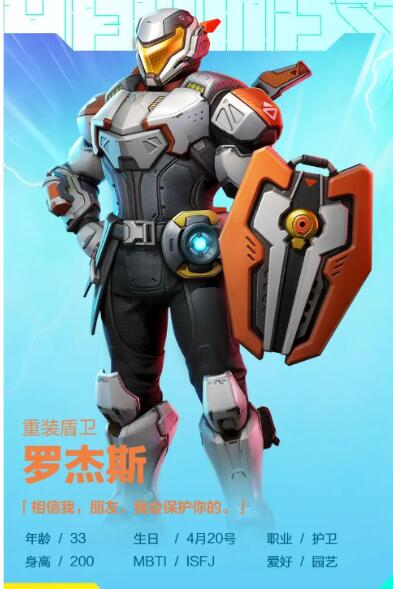 罗杰斯是一个安全感很强的人。他有一个防护罩可以阻挡队友的攻击能量。被动盾技能可以开启手动模式;