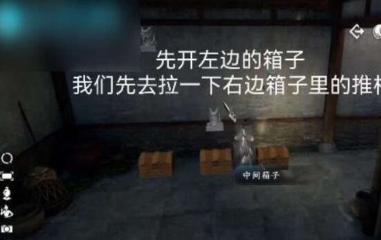 3.首先打开左侧盒子,拉动右侧盒子上的推杆,交互后点击【按下推杆】;