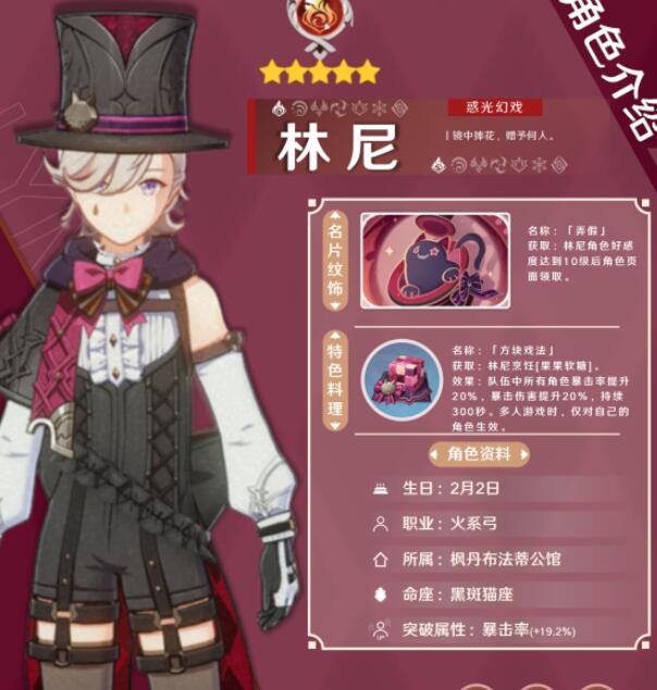 她是枫丹地区的第一位角色,定位为火属性弓箭手。她的攻击特效非常炫酷华丽;